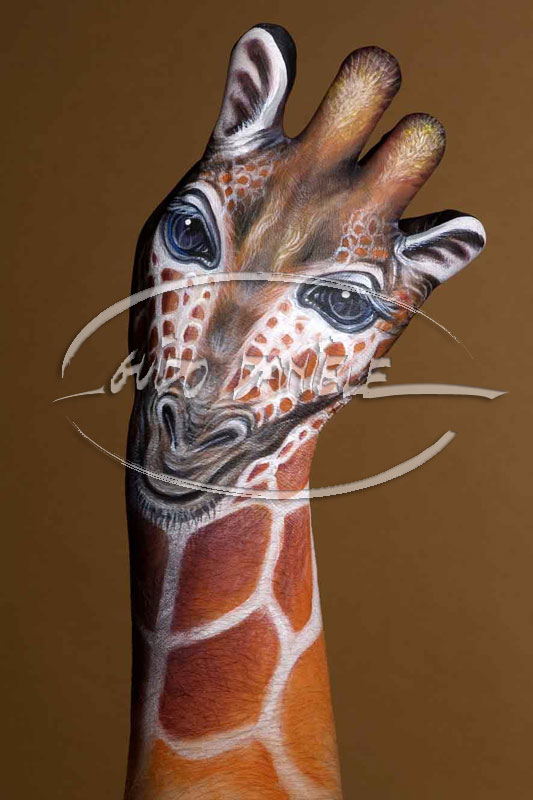 Daniele Guido Artiste peintre italien né en 1950 qui vit et travaille à Milan. On a jouer à faire des ombres chinoises avec nos mains. Eh bien cet artiste, va plus loin dans ce jeu qui rappelle notre enfance. Il réalise des oeuvres en peignant des animaux sur les mains. Pour cela, il utilise les fils de son fils et de sa fille en 3 ou 4 heures pour un résultat saisissant mais surtout très ludique! très original!